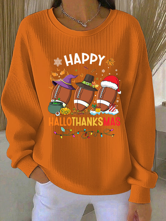 Women‘s Happy Hallothanksmas Football Print Sweatshirt