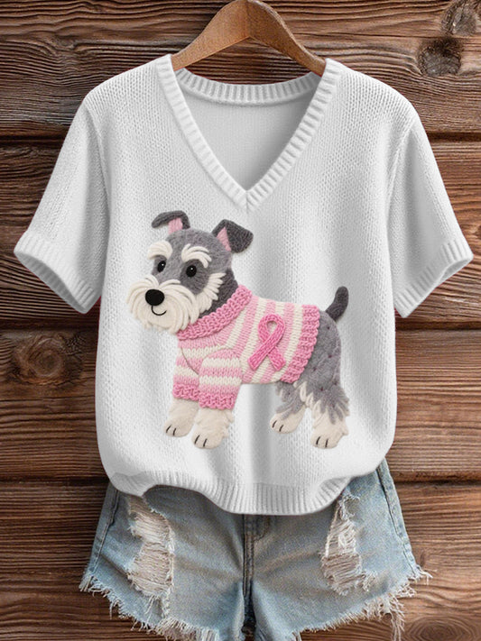 Women's Felt Art Dachshund Pattern Cozy V-Neck Knit Top