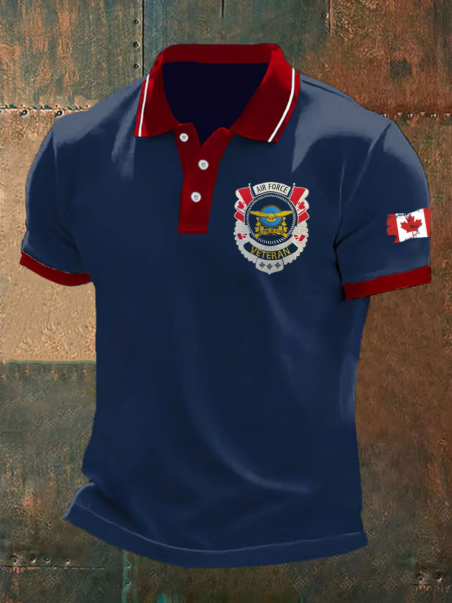 Men's Canadian Air Force Veteran Print Casual Button Top