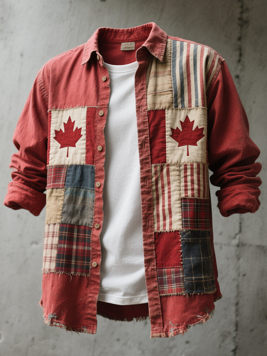 Men's Canadian Flag Inspired Patchwork Art Vintage Shirt