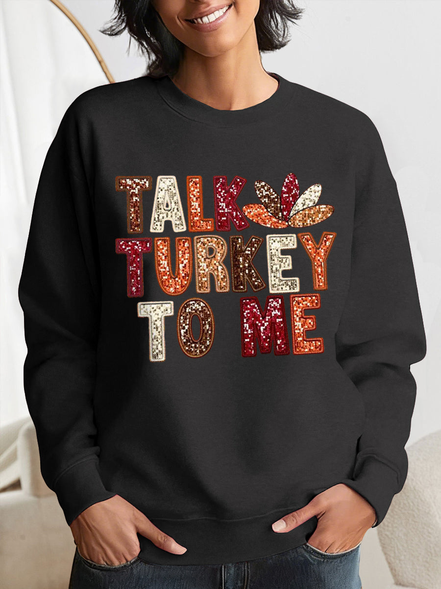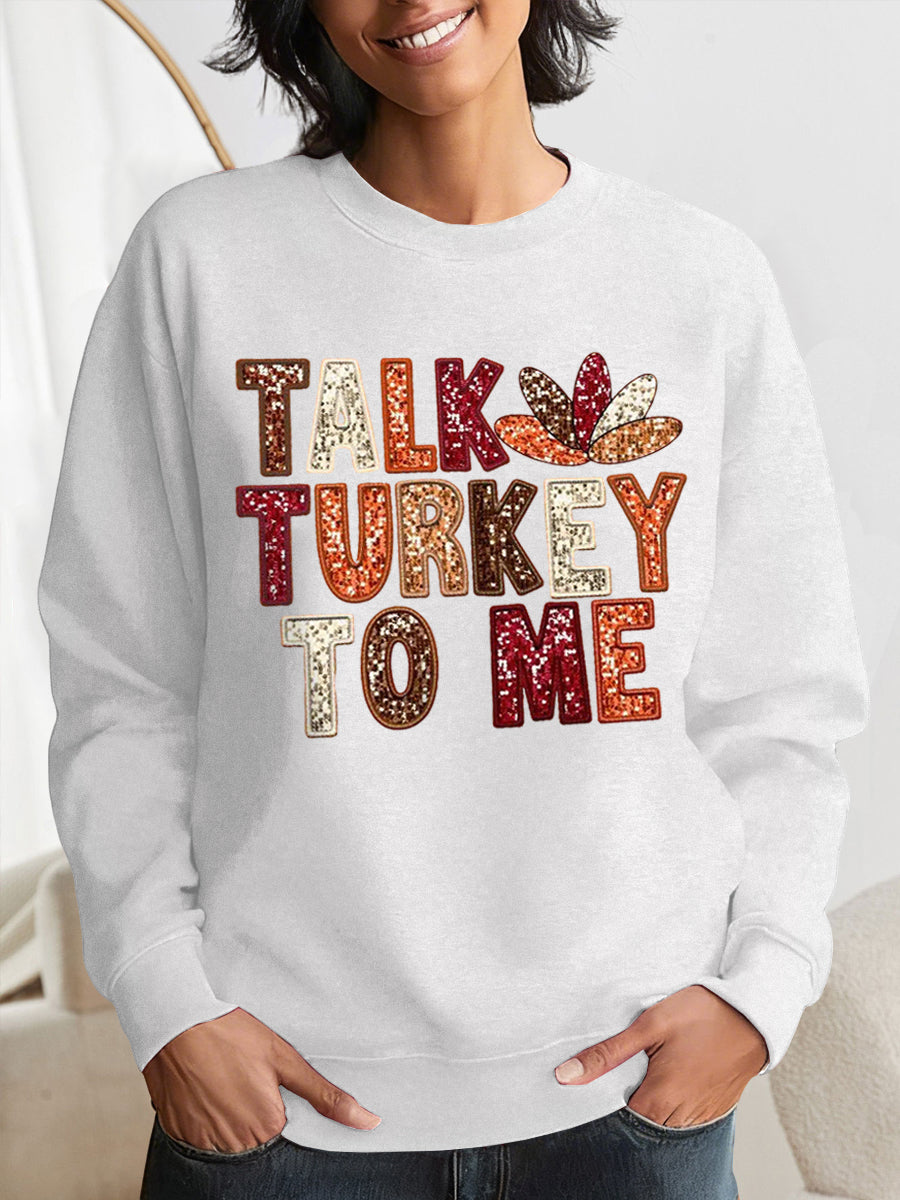 Women's Funny Thanksgiving Talk Tukey To Me Print Sweatshirt