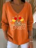 Women's Thanksgiving Turkey Print V-Neck Ribbed Top