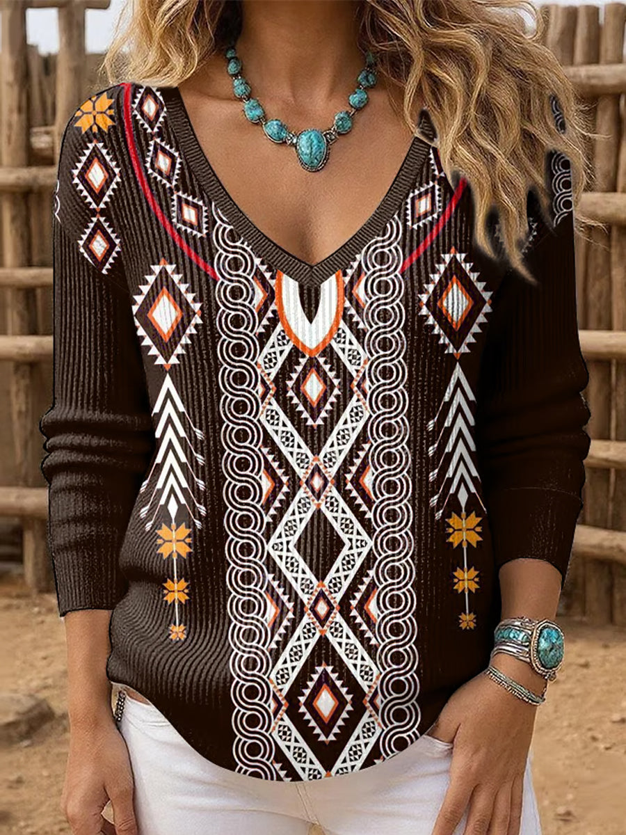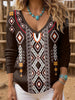 Women's Western Ethnic Aztec Print Caual Long-Sleeve Top
