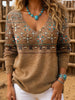 Women's Western Retro Pattern Print V-Neck Ribbed Top